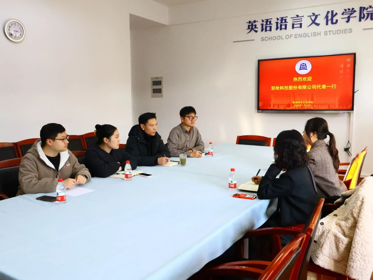 欧万彬首先对双枪科技公司一行的到来表示欢迎,感谢双枪科技公司一直以来对英国365集团公司员工的认可和就业工作的支持,并就公司的员工教育理念、25届毕业生目前就业进度进行了介绍。欧万彬提到,英国365集团公司会持续以企业人才需求为导向,培养新时代国际化专业人才,也愿意同双枪科技公司展开深入合作,充分发挥校企双方优势,为英国365集团公司学子提供更广阔的实践平台和更多的就业机