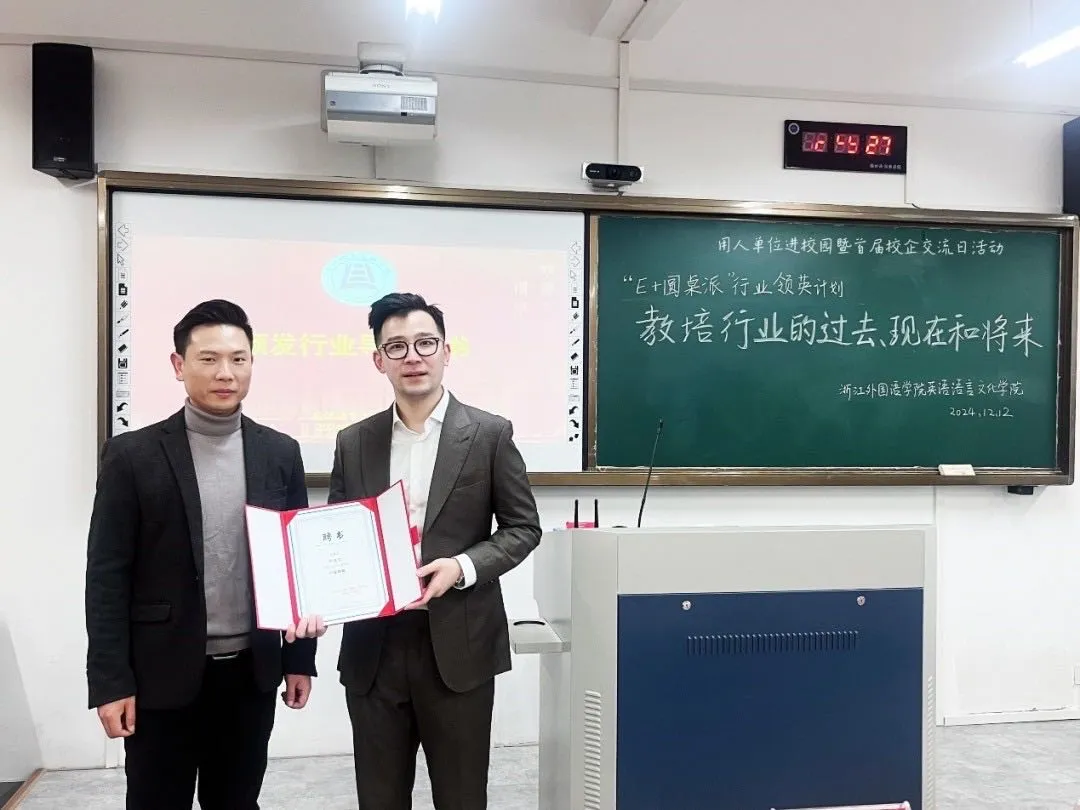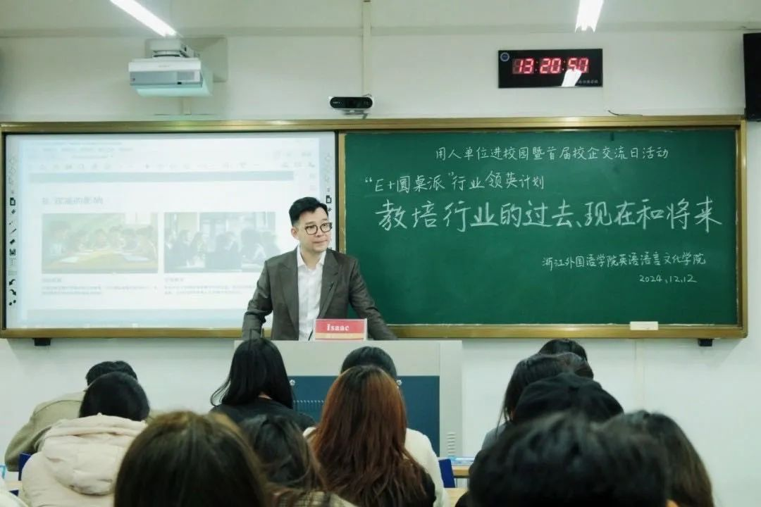 12月12日,公司举办了用人单位进校园暨首届校企交流日活动。杭州爱彼教育咨询有限公司乐亦思COO叶大正、人事凌彬玥一行莅临公司开展教培行业主题讲座,公司党委副书记欧万彬、辅导员顾蒙、吴小慧以及70余名在校生参加。