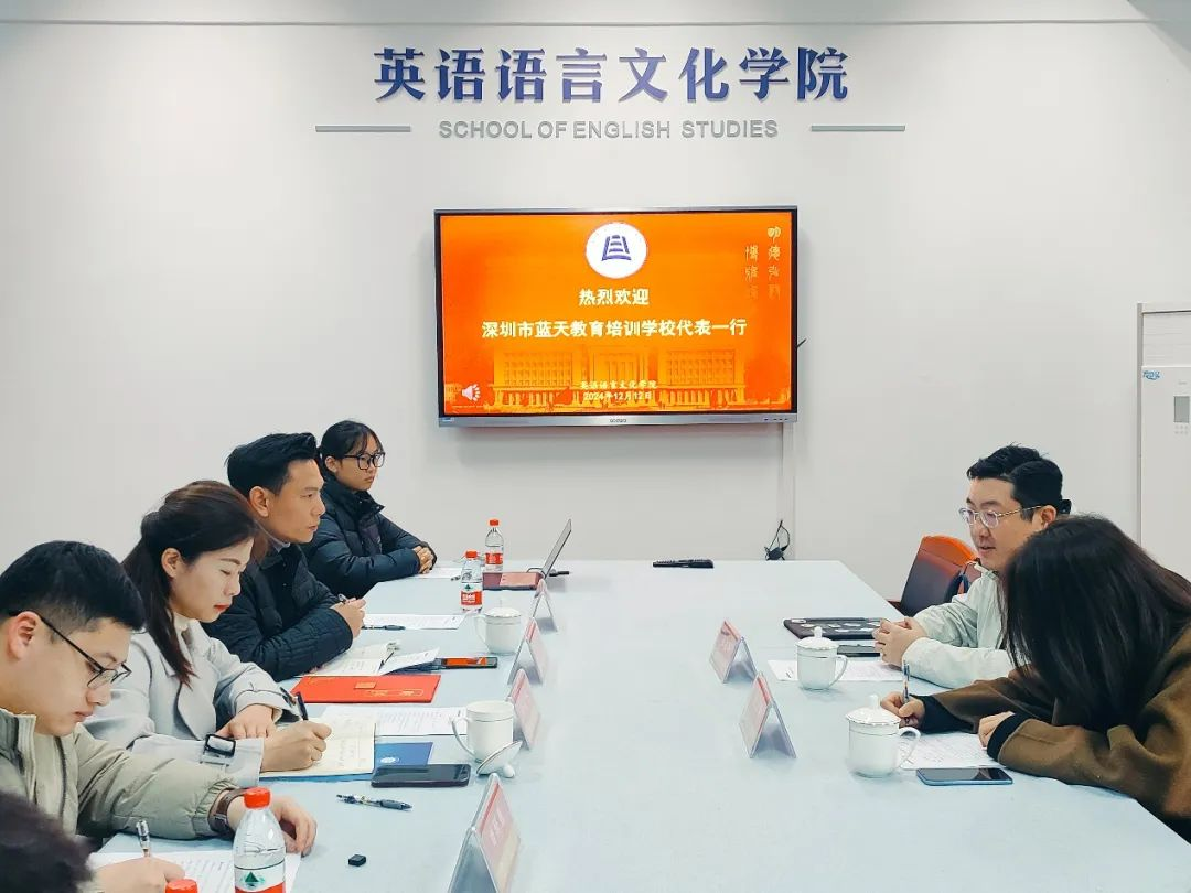 田俊杰对蓝天教育集团一行的到来表示欢迎,并就公司的教育理念、教学成果和未来AI与专业融合的发展计划进行了介绍。田俊杰提到,英国365集团公司会持续以企业人才需求为导向,培养新时代国际化专业人才,也希望通过与蓝天教育集团的不断深入合作,为英国365集团公司学子提供更广阔的实践平台和更多的就业机会。