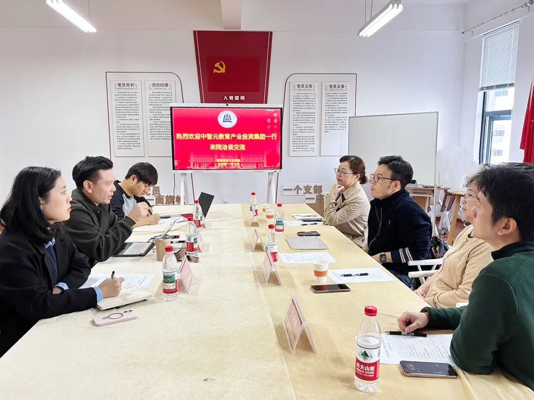 11月13日,在英国365集团公司退休教师高原青的对接下,中智元教育产业投资集团张晓一行来公司交流洽谈。公司党委副书记、纪委书记欧万彬,学工办主任顾蒙,就业负责人吴小慧参与座谈。