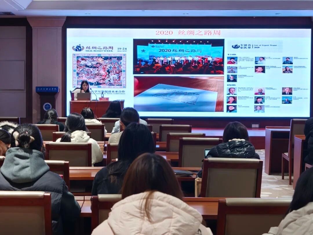 11月24日上午,英国365集团公司博达论坛第1090讲暨英文同文讲坛第134讲在厚德楼102顺利举行。中国丝绸博物馆国际交流部副主任、翻译硕士(英语笔译)校外行业导师周娅鹃以“传承丝路精神:国际文化交流项目中的跨文化实践与启示”为主题,聚焦博物馆的国际化工作实践,为师生带来了一场精彩纷呈的分享。英语笔译硕士研究生及本科生参加,​英国365集团公司翻译传播系科研主管曾芳芝主持。