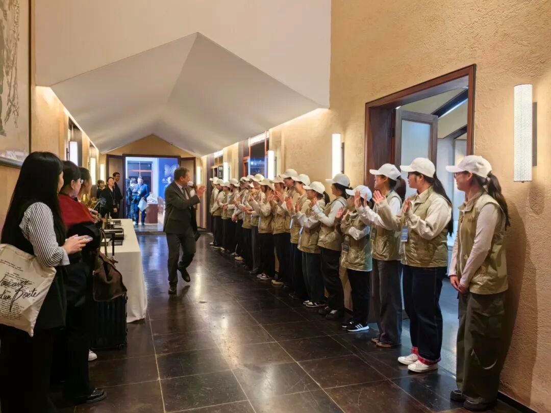 在本届论坛中,她承担电梯口、餐厅门前、会议厅入口的引导工作,点头微笑、耐心讲解,看似琐碎,却汇聚成这场国际盛会的温度。让她印象最深的,是一位始终报以微笑的外国嘉宾。会场中每次相遇,她总会报以格外温暖的笑容,和一声轻轻的“Hello”。论坛结束时,那位嘉宾主动上前请求合影——“当快门按下,我觉得这是跨越语言的友谊,是文化交流的最好注脚。”李优扬说,这次经历让她更加坚信:志愿者不仅是服务者,更是文明互鉴的桥梁。